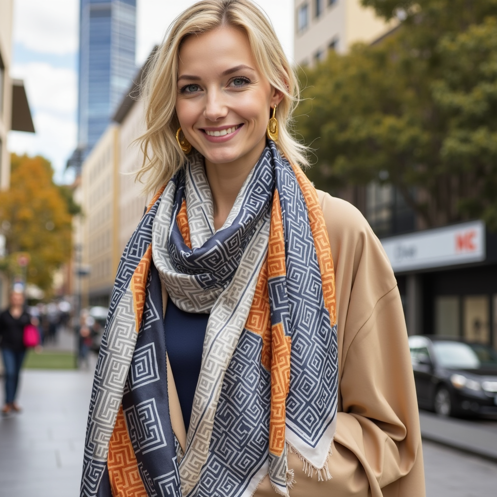 Our bold-patterned scarves are designed to turn everyday moments into standout style — wherever you go.